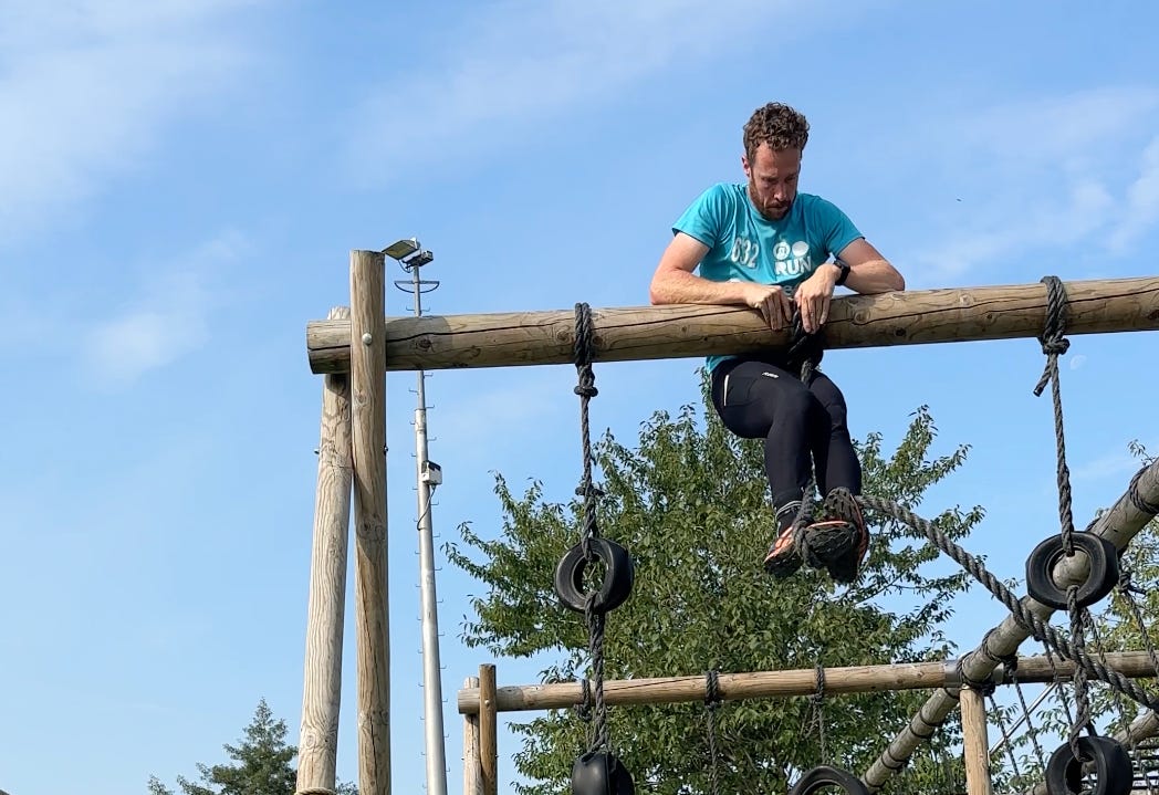 I do survival runs (or maybe you know the sport as obstacle runs). You have to run, climb ropes, cross beams and all sorts of other crazy things.
